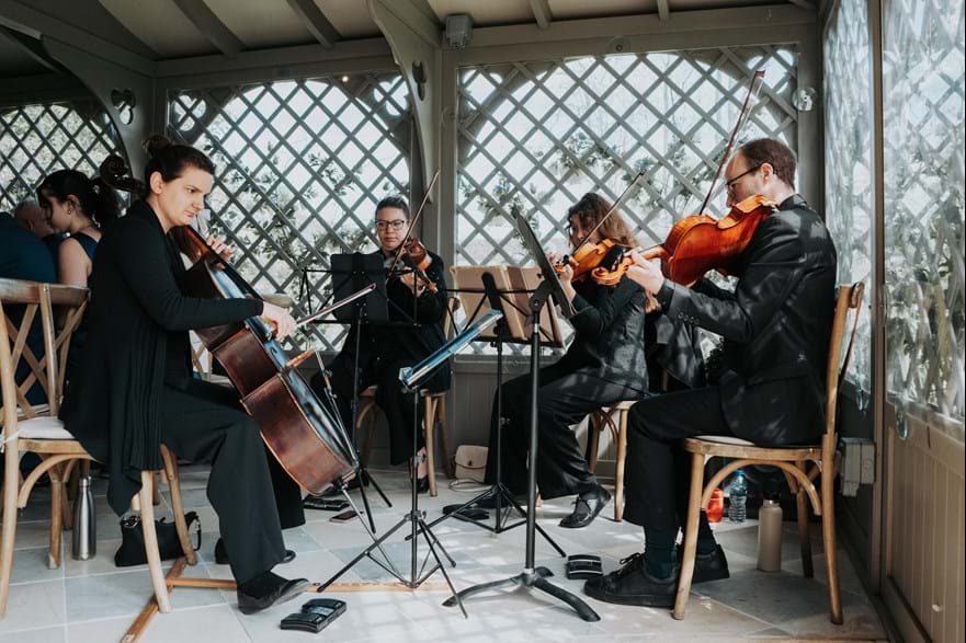 We decided we wanted to have a string quartet play during and after our ceremony, and it turned out to be one of the best decisions we made. We chose Leon String Quartet (https://leonquartet.co.uk/). I walked down the aisle to ‘I Get To Love You’ by Ruelle and it was so beautiful.