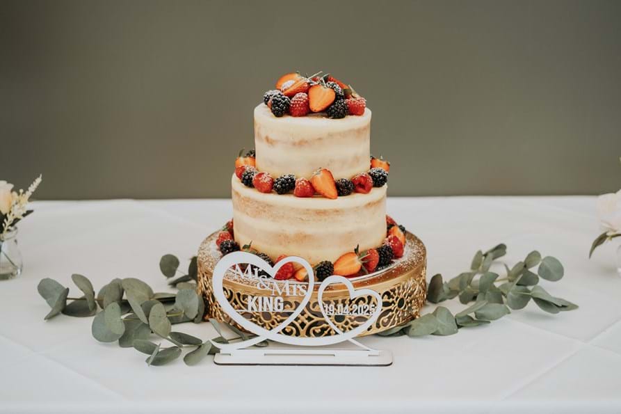 We actually opted for a more budget friendly option when it came to cake. We ordered a two-tiered sponge from M&S and my mother-in-law and sister-in-law decorated it with some fruit on the day. I actually really loved how it turned out.