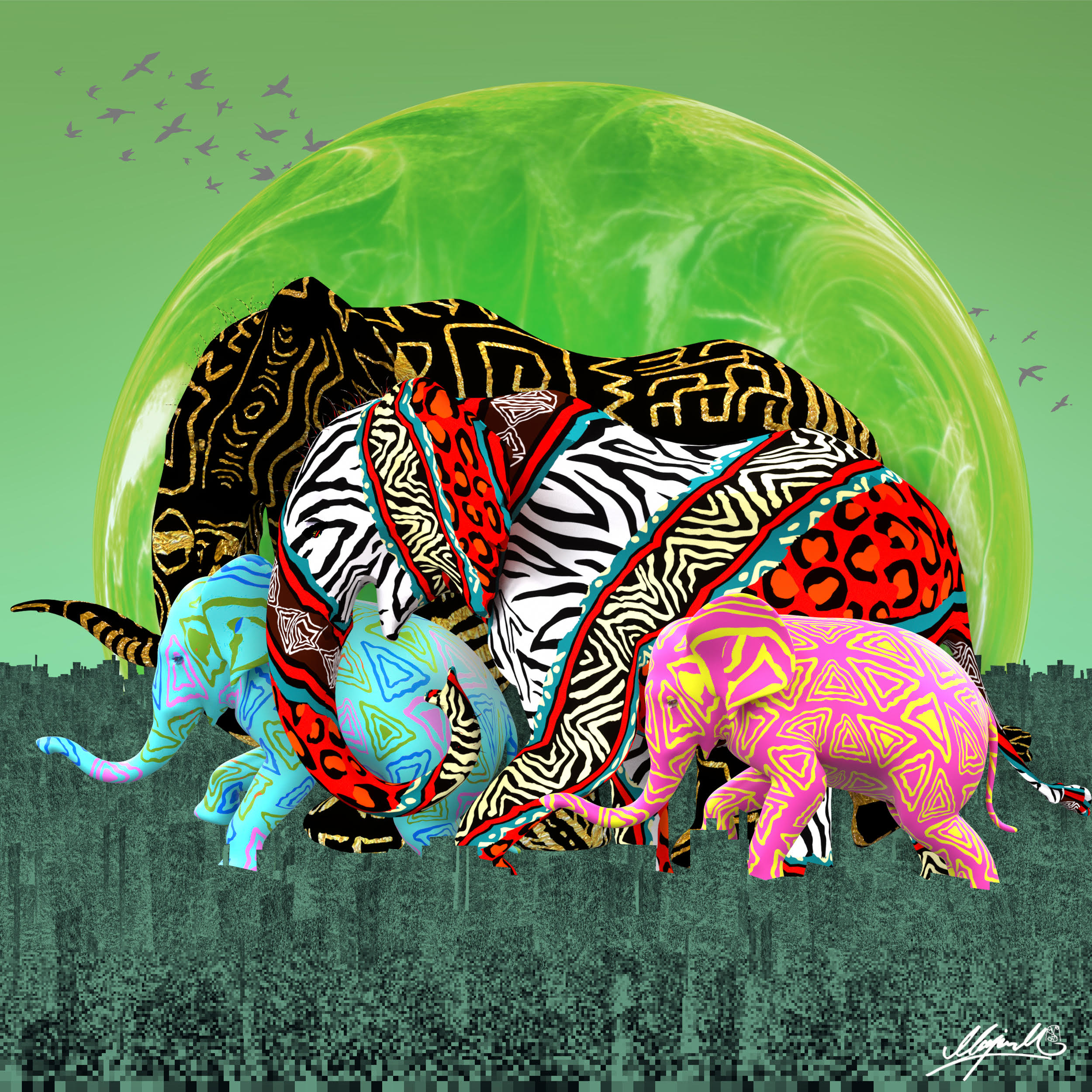 This exciting new partnership offers the opportunity to support three individual projects by purchasing a piece of unique digital art. The campaign will directly support three organisations who are passionate about protecting elephants – ourselves, Space For Giants and Wildlife Conservation Foundation of Tanzania.